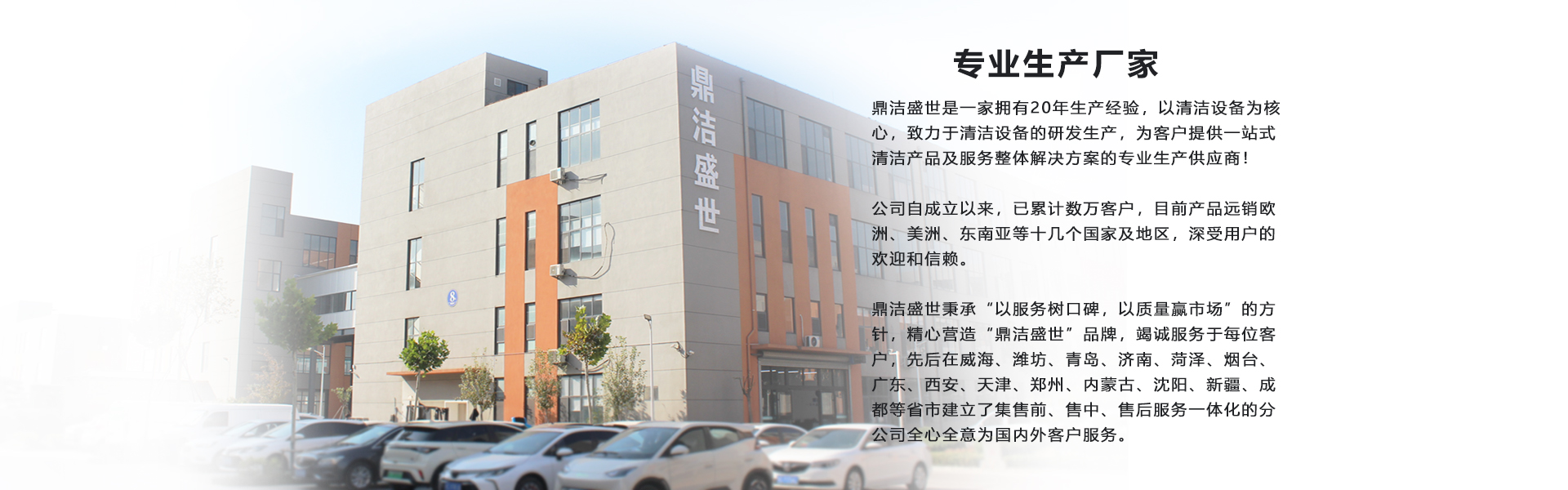 COMPANY PROFILE 企業(yè)簡(jiǎn)介 鼎潔盛世清潔設(shè)備有限公司專(zhuān)業(yè)研發(fā)、銷(xiāo)售工業(yè)洗地機(jī)、掃地機(jī)、掃地清掃車(chē)、塵推車(chē)、工業(yè)吸塵器等各種清潔設(shè)備。是專(zhuān)業(yè)的洗地機(jī)、掃地車(chē)、掃地機(jī)生產(chǎn)廠(chǎng)家! 公司為顧客提供完善的全行業(yè)清潔解決方案,包括:市政環(huán)衛(wèi),廣場(chǎng),公園,物業(yè),清潔承包商,工業(yè),工廠(chǎng),車(chē)站,倉(cāng)儲(chǔ)物流,商城超市,政府,事業(yè)單位,學(xué)校,醫(yī)院,寫(xiě)字樓,酒店,停車(chē)場(chǎng)地下車(chē)庫(kù)等領(lǐng)域清潔方案、清潔作業(yè)方案定制。 公司自成立以來(lái)在創(chuàng)建過(guò)程中始終全力以赴不斷減低清潔產(chǎn)品采購(gòu)和使用成本為己任,走持續(xù)發(fā)展之路,為推動(dòng)中國(guó)清潔產(chǎn)品和環(huán)境保護(hù)事業(yè)做出自己的貢獻(xiàn)! 公司遵循以服務(wù)...
